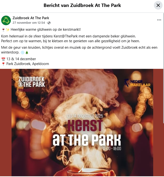 Kerst at the park 09.12.2025 Kom gezellig kerstmis vieren in park Zuidbroek.Georganiseerd door Samen Zuidbroek.En trek de schaatsen aan voor een rondje krabbelen op de schaatsbaan.Voor schaatsen wordt gezorgd.Voor meer info: kijk hieronder. Print Mail Reageer