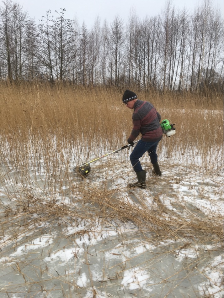 Riet maaien 16.02.2021 Hier zie je dat Henny en Bertus de vijver voor de vleermuisbunkerhet riet maaien. Opdat de vleermuis een goede aanvliegroute heeft. En mogelijk de ijsvogel ook een goede toegang krijgt. Print Mail Reageer